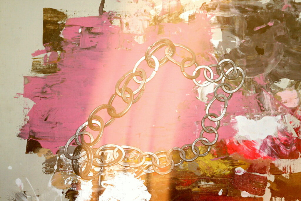 金属は素材によって比重の幅が広いのも特徴だが、この要素をデフォルメする事で彼女の作品は成立している。