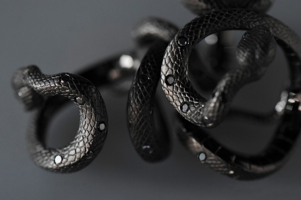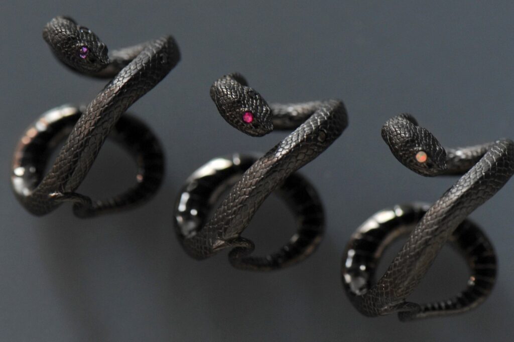 アオダイショウやキングスネークなどのモチーフを緻密な手仕事でジュエリーへと昇華する。