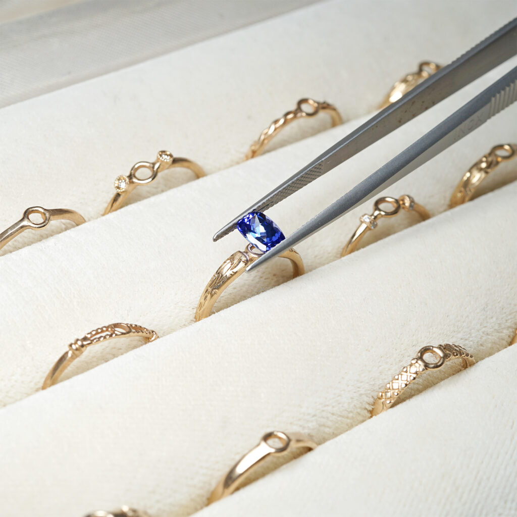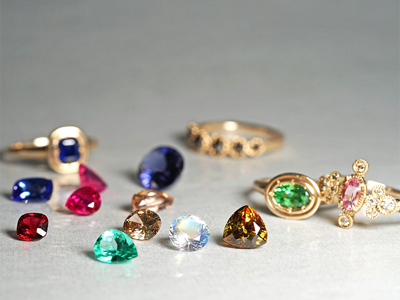 長幡氏が丁寧に選び抜いたルースコレクションからお好きな石を好みのデザインでジュエリーへお仕立ていただけるセミオーダー会。