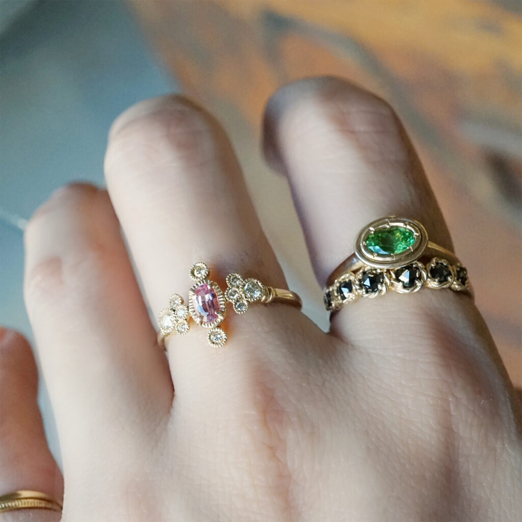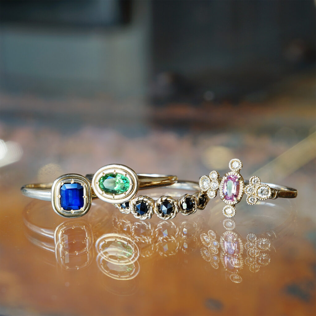 長幡氏が石選びからこだわってそれぞれの石にふさわしいデザインで仕立てた逸品たちです。