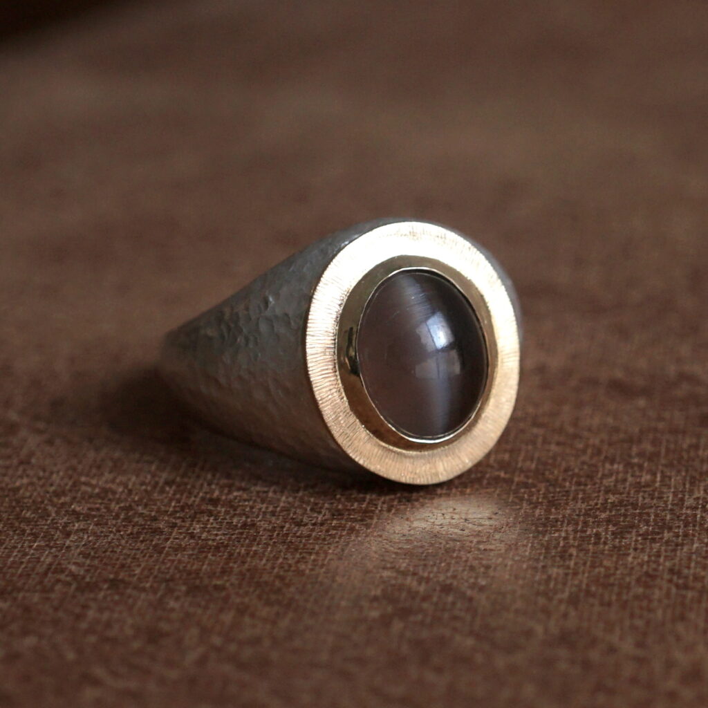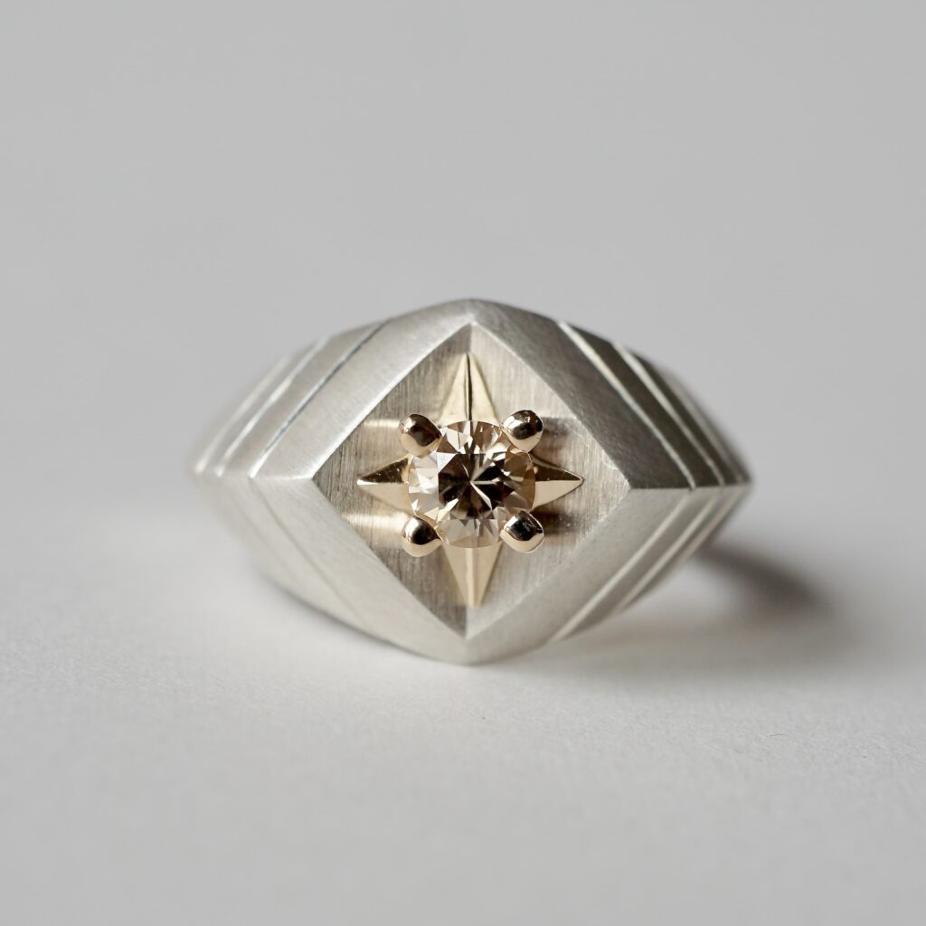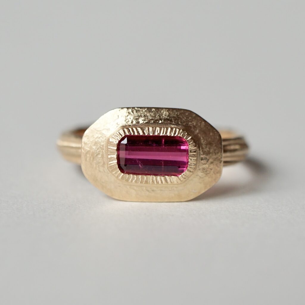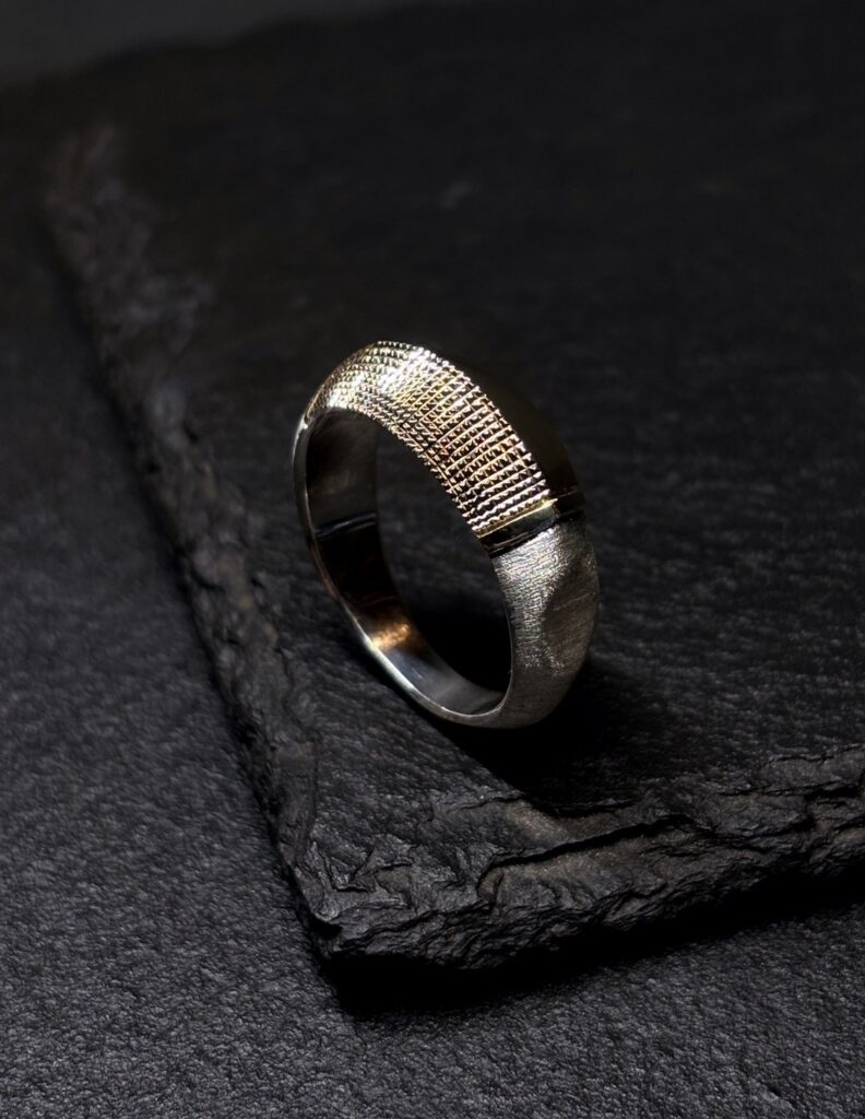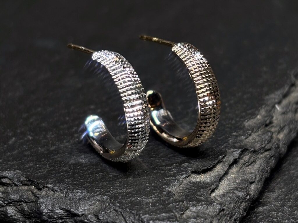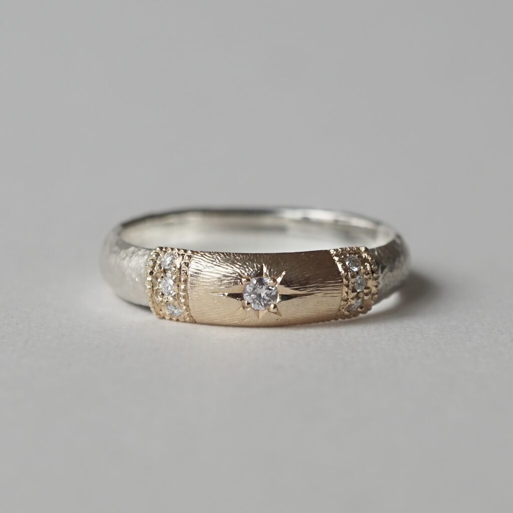 「発展の道」と訳されるこの会期では、フープ型のピアスや甲丸形状のバングル、従来よりも細身の造形や天面にエッジを利かせたデザインのリング等といった新作をはじめ、GERMEDEUR作品におけるアイデンティティ・象徴とも言える彫りの技巧が堪能できる品々をご紹介します。