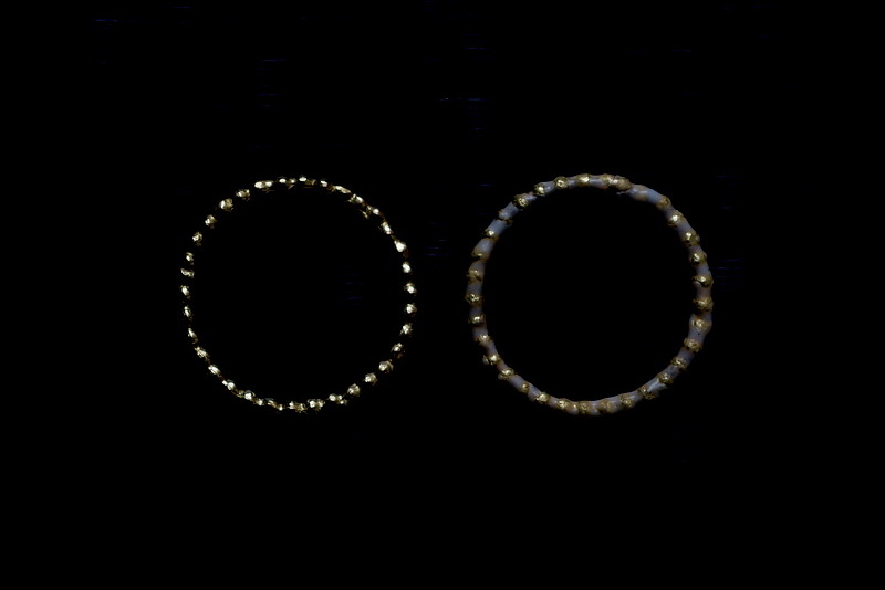 地金はK10イエローゴールドあるいはK18イエローゴールドをベースに、有機的な印象を感じさせる金属造形を採用しています。