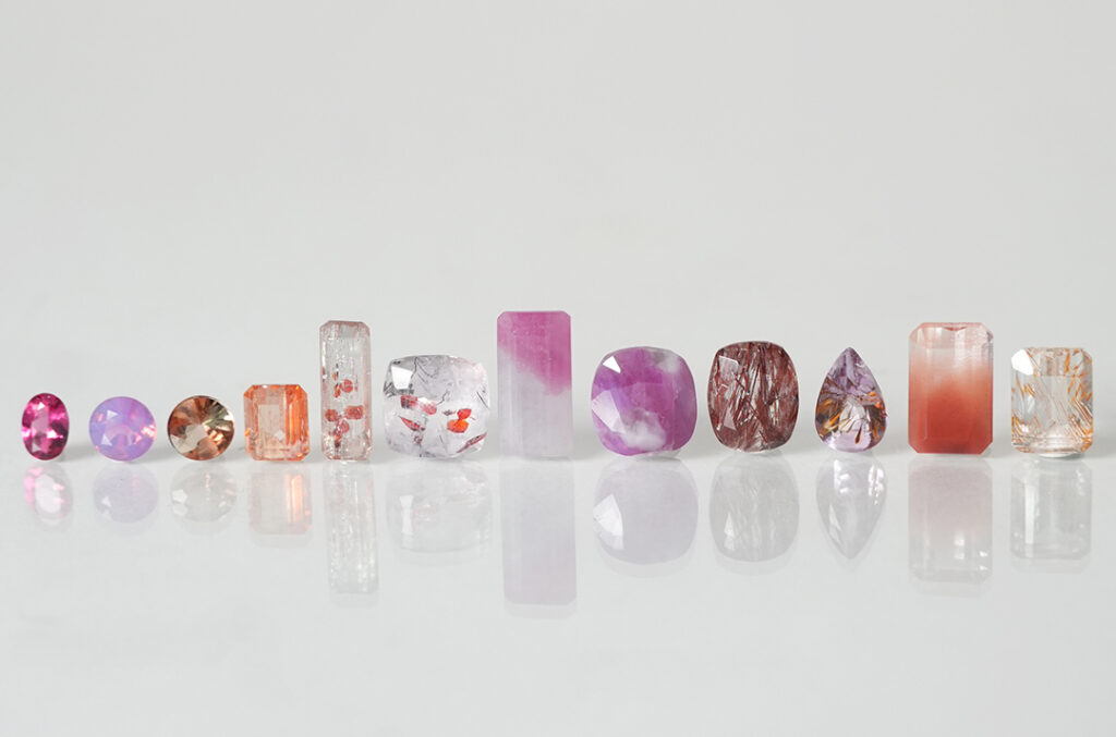 ルベライト・ルビー・アンフィボールインクォーツ・レッドルチル・ゲーサイトヘマタイトインクォーツなど彩り様々な輝石