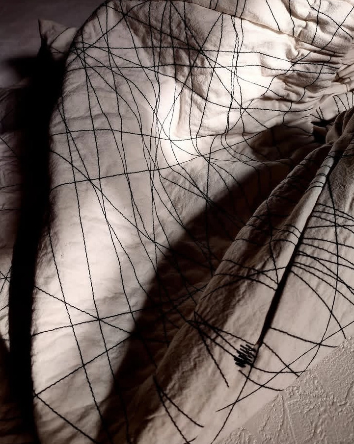 フリーステッチや通称”スクラッチステッチ”を入れることで、内面の揺らぎや、怒りが爆発した後の”痕跡”を残すシリーズ。