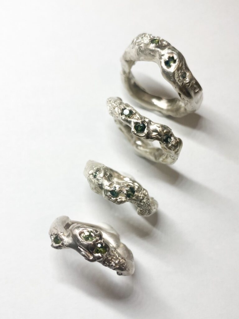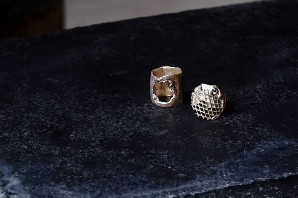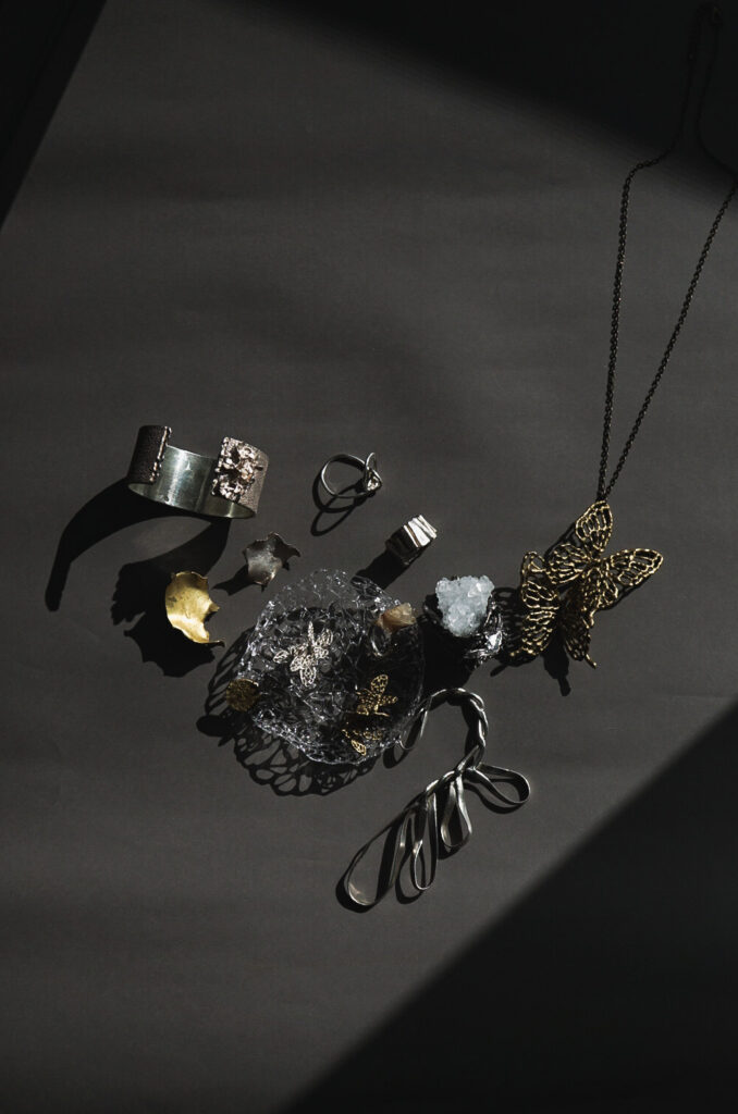 切り絵・絵画・粘土等で培ったマルチな表現方法を金属造形に応用し、そこに生ずる様々な作用を独自の発想でジュエリーへと昇華するyuka ishikawa。