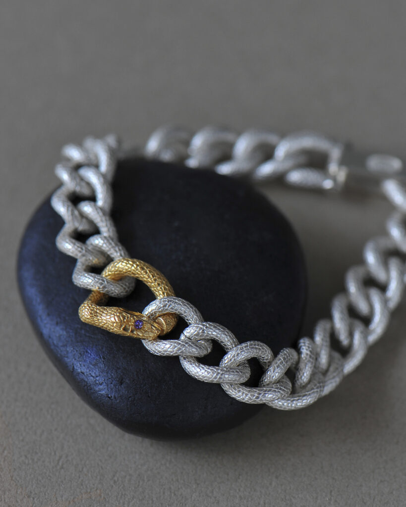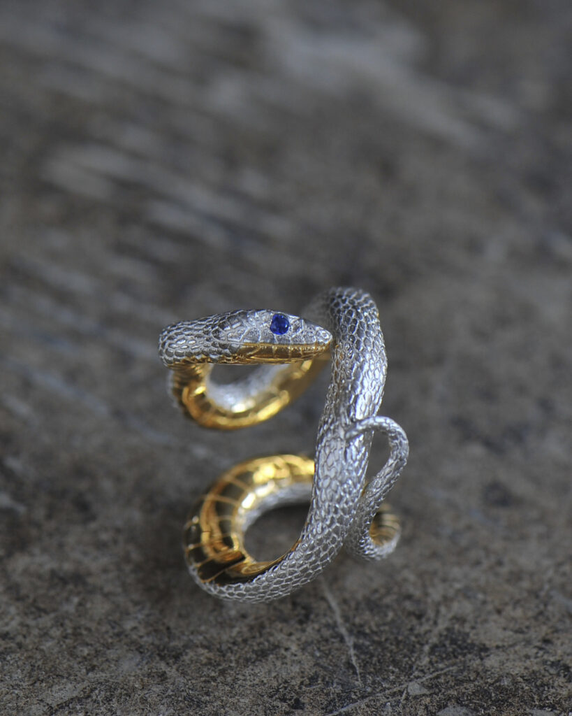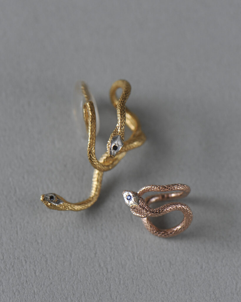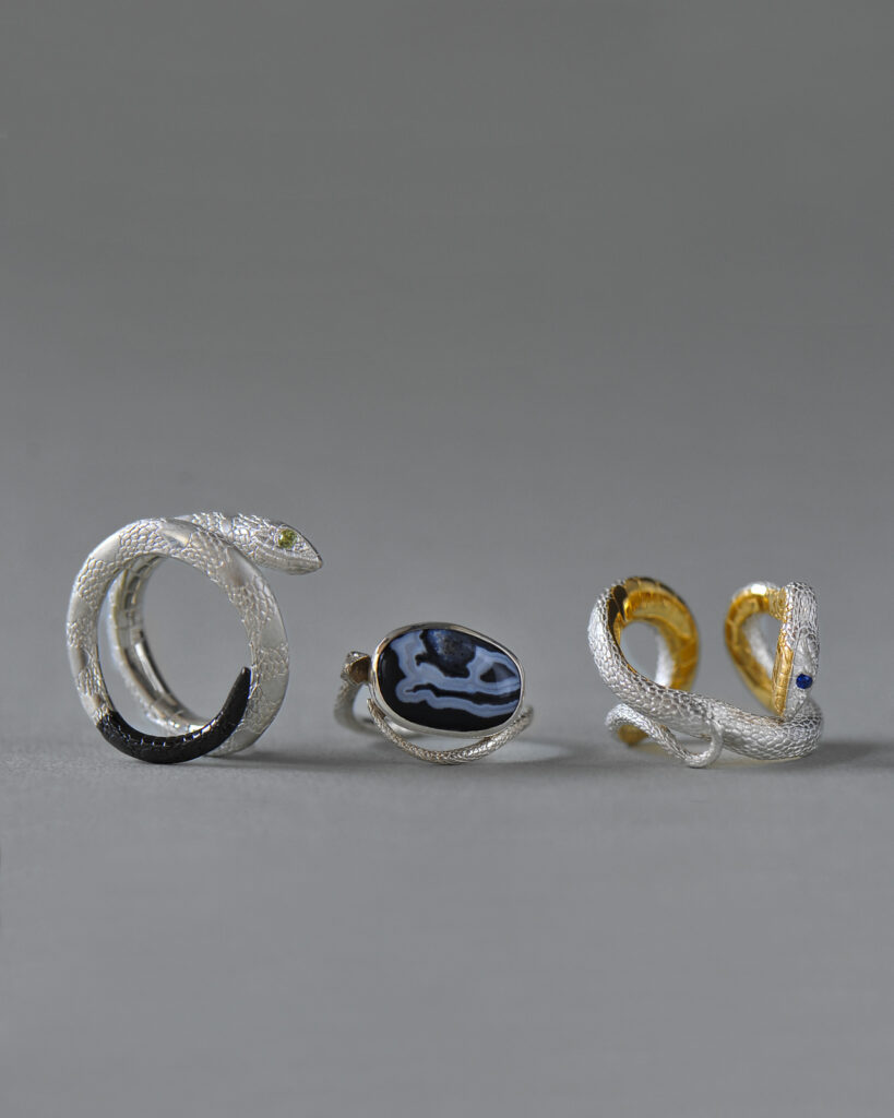 アオダイショウやキングスネークなどのモチーフを緻密な手仕事でジュエリーへと昇華する。