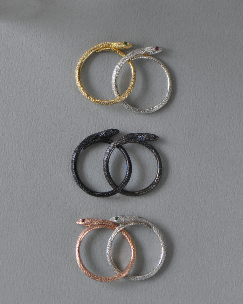 蛇造形のディテールは勿論、着け心地にも確かなこだわりを感じるクオリティとデザイン性が魅力です。